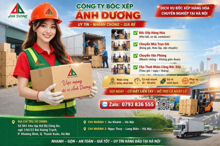 Bốc xếp Ánh Dương – đơn vị cung cấp dịch vụ bốc xếp hàng hóa chuyên nghiệp tại Hà Nội. …