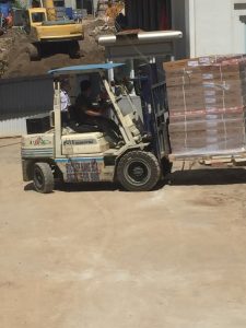 Hàng đóng pallet: Sử dụng xe nâng tay, xe nâng điện để di chuyển hàng từ container vào sâu trong kho.